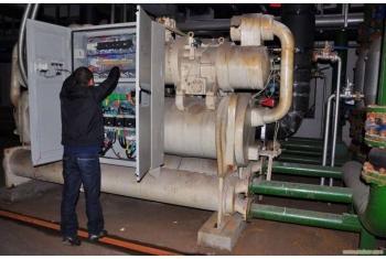 對于吸收式制冷機組,日常保養(yǎng)需對溴化鋰機組進行氣密性檢驗,若機內(nèi)溶液渾濁,顏色由金黃色變?yōu)榘导t、綠或黑色,則用沉淀法和過濾法清除雜質(zhì),并測量鉻酸鋰等含量及PH值,過濾后的溶液應(yīng)保存于密封容器內(nèi);用機械或化學清洗方法清理機組的冷凝器、發(fā)生器、吸收器及蒸發(fā)器;為防止銅管凍裂,應(yīng)避免在0℃以下維保機組,通常在每年3 - 4月進行維保,如遇冬季故障,維修時須將水蓋中存水及管道熱交換器中存水放凈;及時檢測和更換易損部件;及時檢測和更換燃燒器內(nèi)過濾器、電極、噴嘴及清除爐膛灰塵。短期停機維保(停機時間在2周以內(nèi))時,須將機內(nèi)溴化鋰容易充分稀釋并確保機內(nèi)真空度,機組暴氣檢修一般不應(yīng)超過8h,檢修后須立即做正壓檢漏和真空檢測。長期停機維保時,將蒸發(fā)器內(nèi)的冷劑水全部旁通至吸收器,并使溶液均勻稀釋,以防在環(huán)境溫度下結(jié)晶。